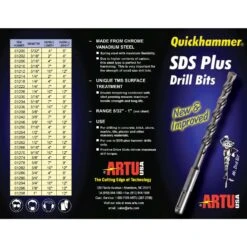 ARTU Quickhammer 3/8 In. X 8 In. L Tungsten Carbide Tipped SDS-plus Hammer Drill Bit SDS-Plus Shank