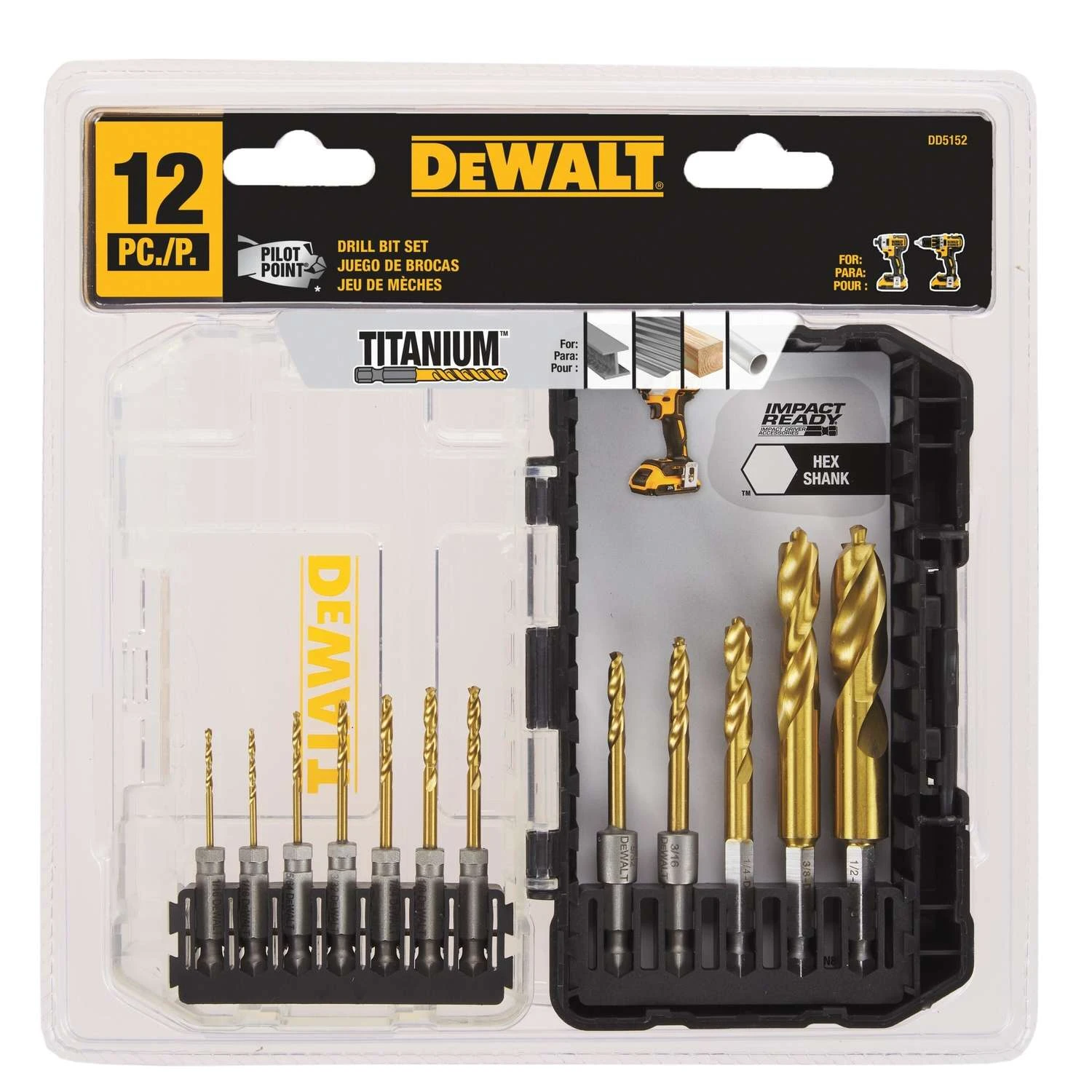 DeWalt Pilot Point Titanium Drill Bit Set Hex Shank 12 Pc