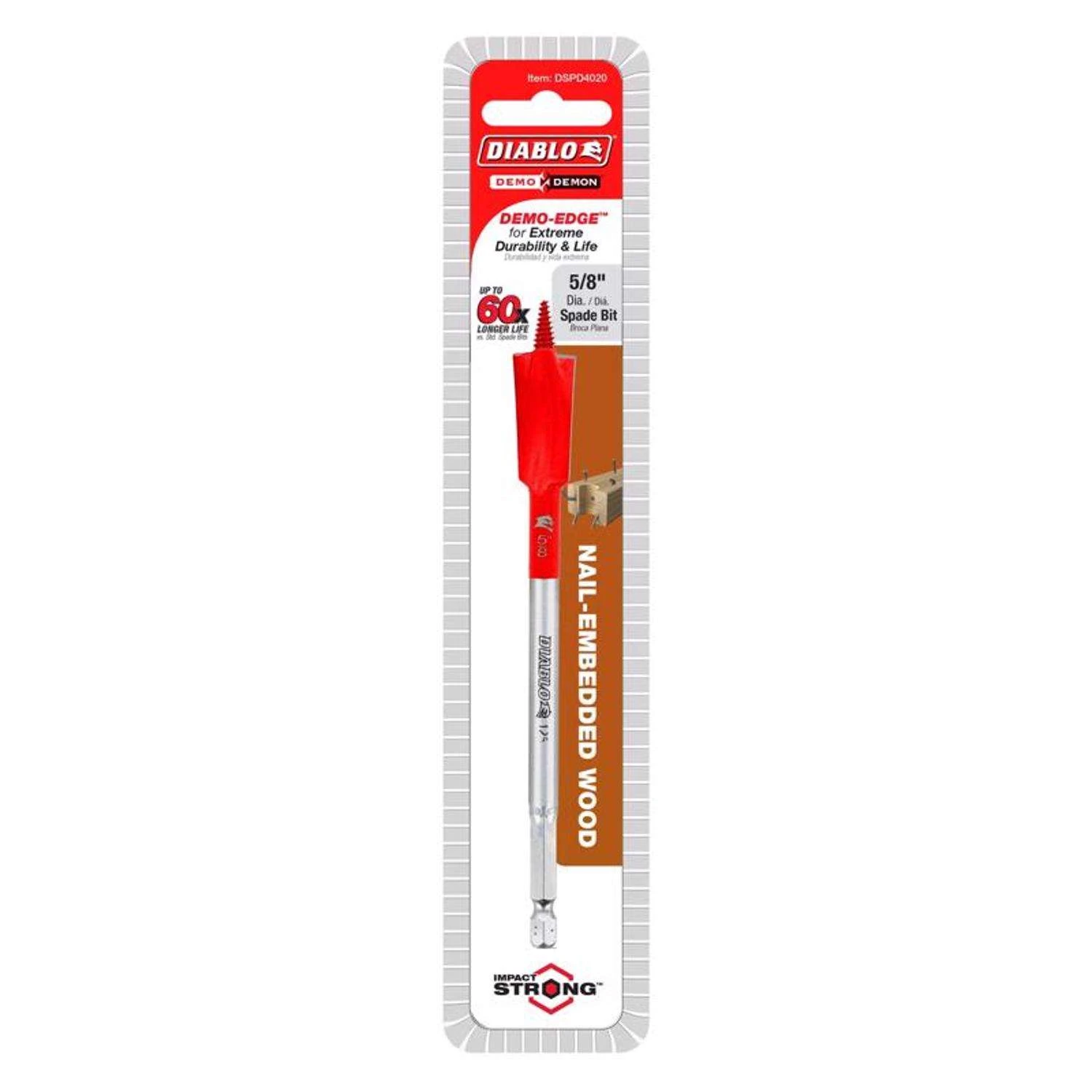 Diablo Demo Demon 5/8 In. X 6 In. L High Carbon Steel Nail-Embedded Wood Spade Bit Hex Shank 1 Pk