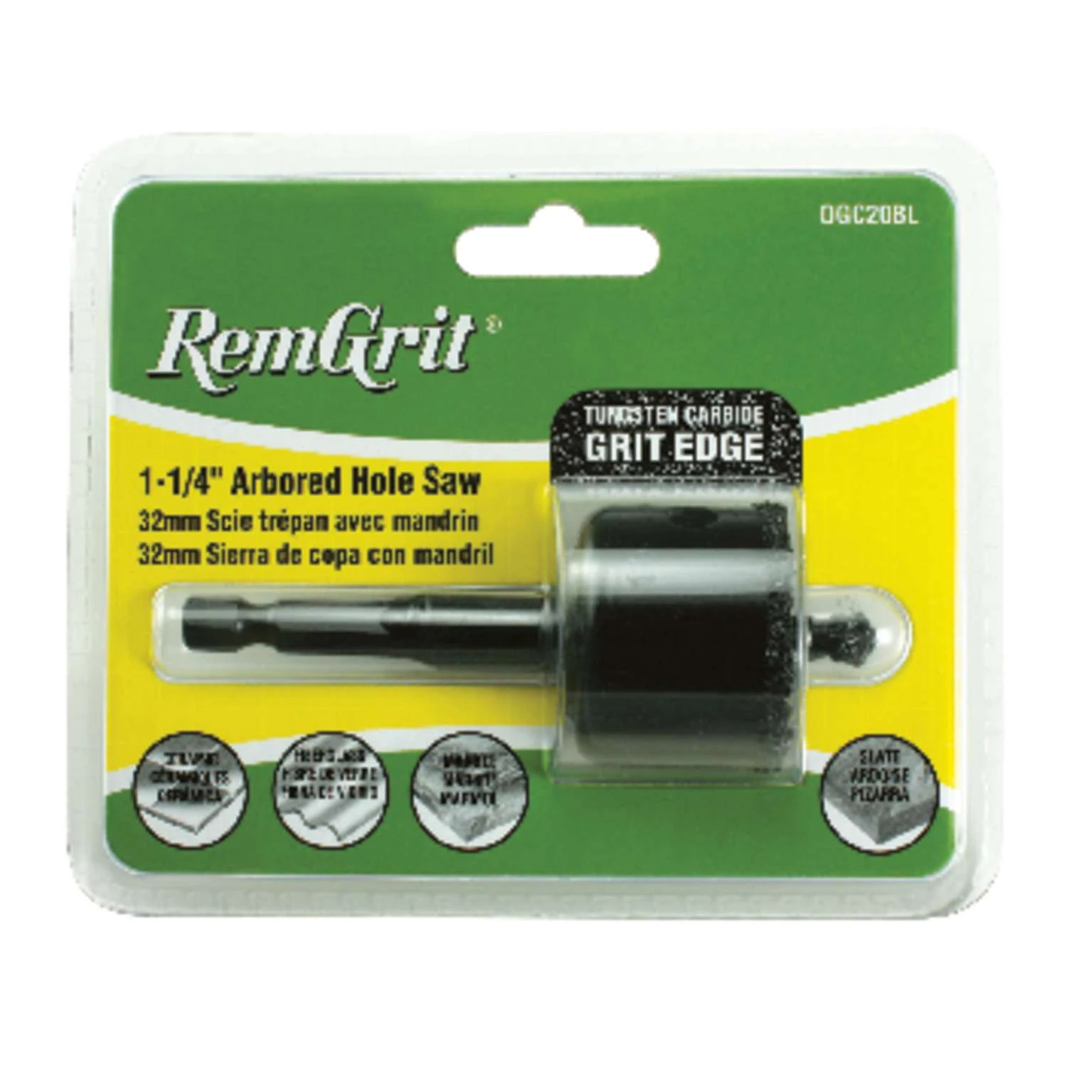 RemGrit® Carbide Grit Arbored Hole Saws cut extremely hard abrasive materials including laminates, fiberglass, ceramic tile, marble, slate, cast iron and composites. Features a continuous grit edge of tungsten carbide particles bonded to alloy steel back. Ideal for plumbing, construction, marine and aircraft applications. High heat and abrasion resistance No teeth to dull or chip Resists snagging Smooth cutting Greater wear resistance