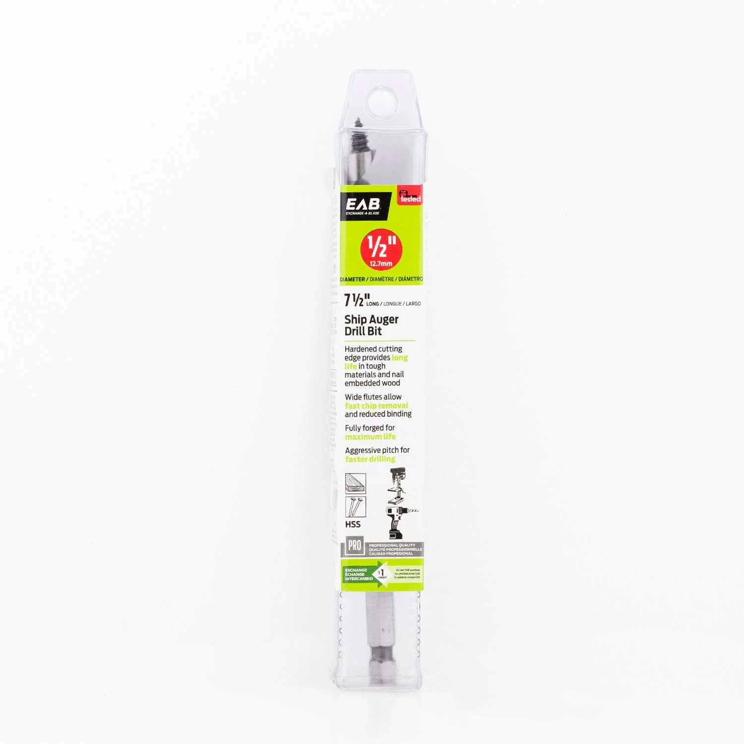 Exchange-A-Blade 1/2 In. X 7-1/2 In. L High Speed Steel Wood Ship Auger Drill Bit 1 Pk