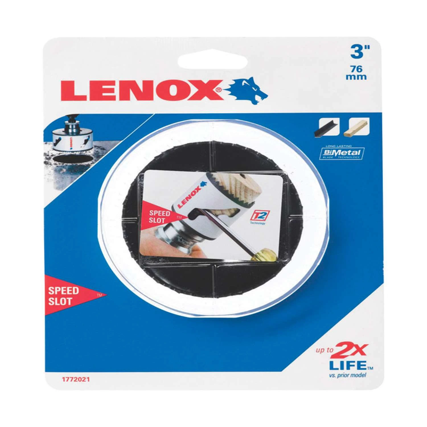 Lenox Speedslot bi-metal hole saws feature a staircase design for easy plug removal, a thin kerf design and enhanced tooth geometry for efficient performance. Ideal for cutting metal & wood. Increased wall thickness improves durability and minimizes tooth loss when cutting metal; optimized tooth design penetrates metal with ease. Vari tooth design Positive rake tooth Shock resistant teeth for both wood & metal cutting Deep aggressive cutting action Speed slot design makes removing the plug faster & easier 50% longer life, 2X more durable