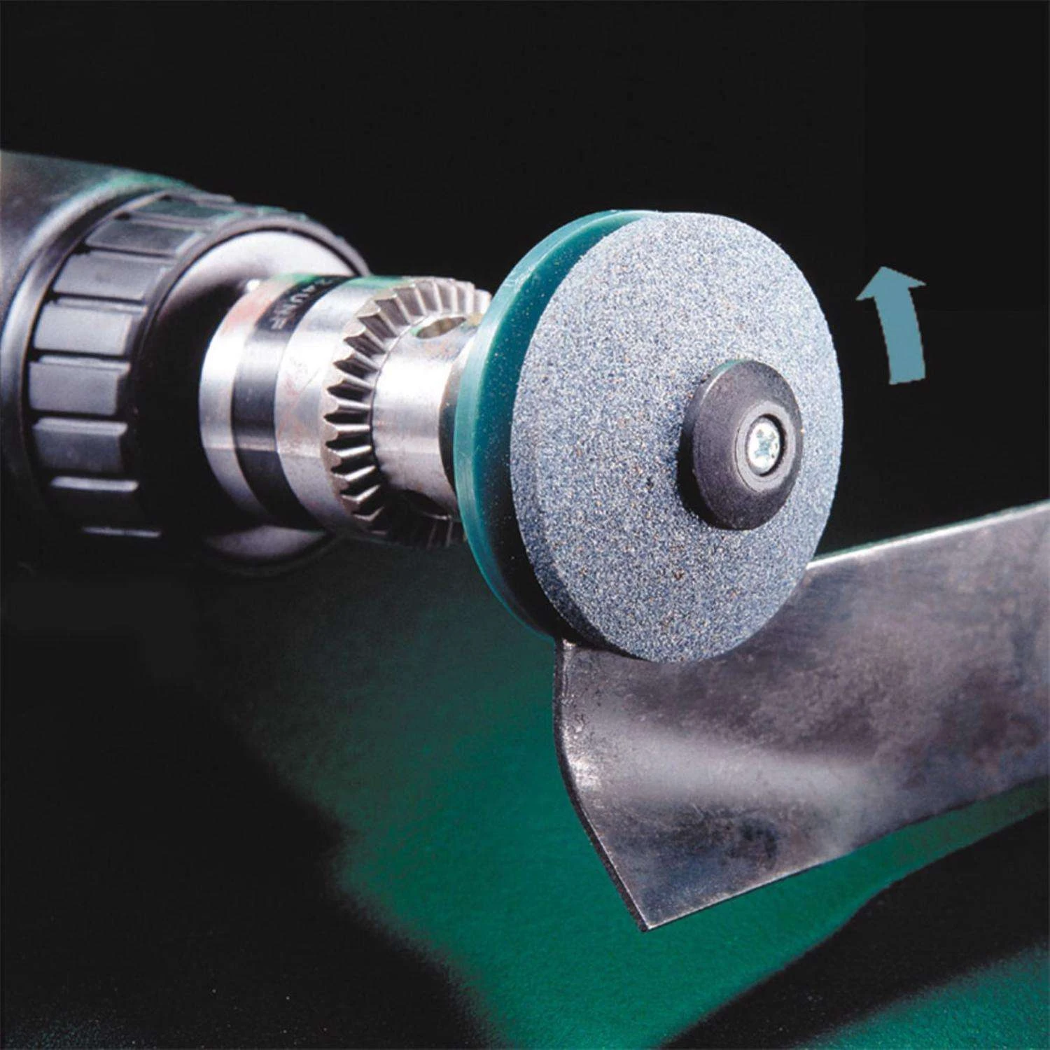 Reshapes rotary mower blades to the correct angle in minutes. Sharp blades give a clean cut and are healthier for grass. No need to remove blade from the mower. Reversible, aluminum oxide grinding wheel gives around 10 blade sharpening, to last years. Also, re-edges and reshapes hoes, lawn edger’s, spades, axes, making them easier and safer to use. Fits any domestic power drill. Reshapes rotary mower blades in minutes Reversible aluminum oxide grinding wheel gives around 10 mower blade re sharpenings Also re edges and reshapes spades hoes lawn edgers making them much easier to use Fits any domestic power drill